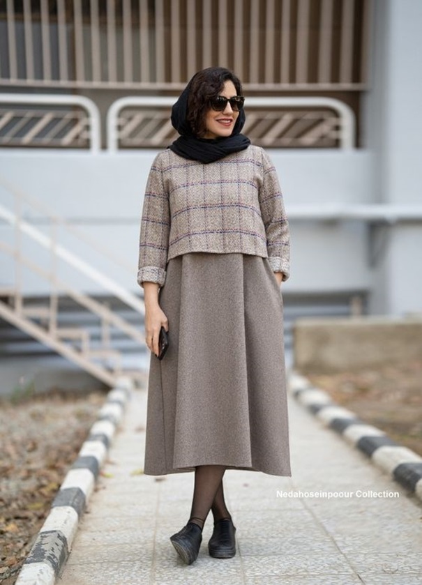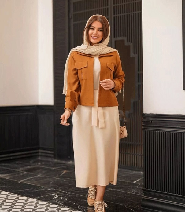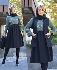 مدل مانتو پیراهنی دو تیکه با کت رویه کاملا پوشیده
