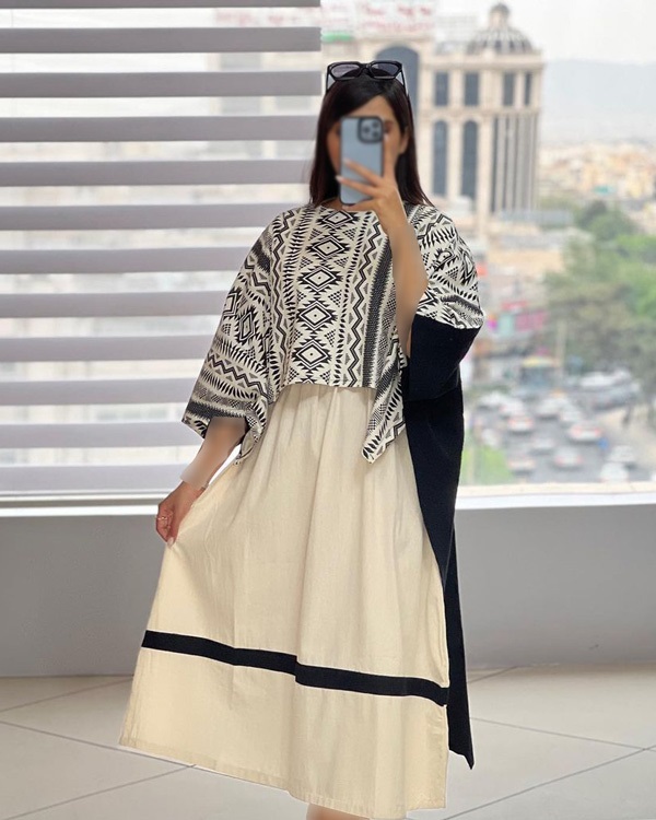 مدل مانتو پیراهنی دو تیکه، با رویه طرح حلزونی