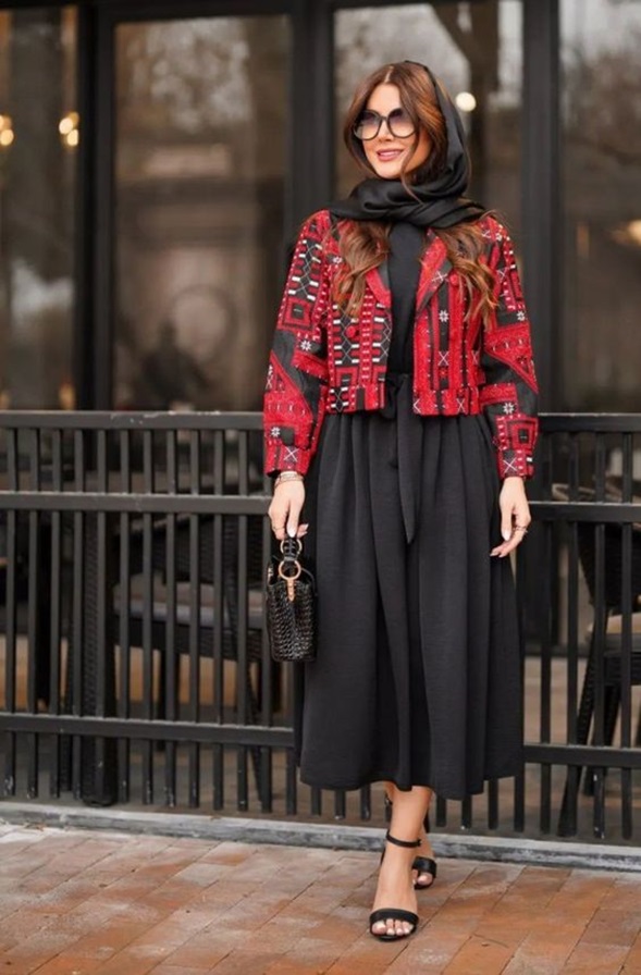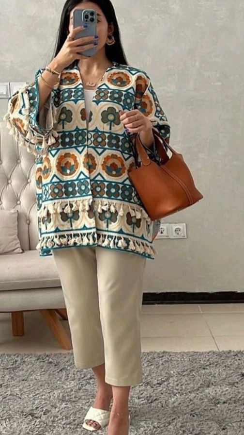 مدل مانتوی جدید سال، ست شده با شلوار گشاد مشکی