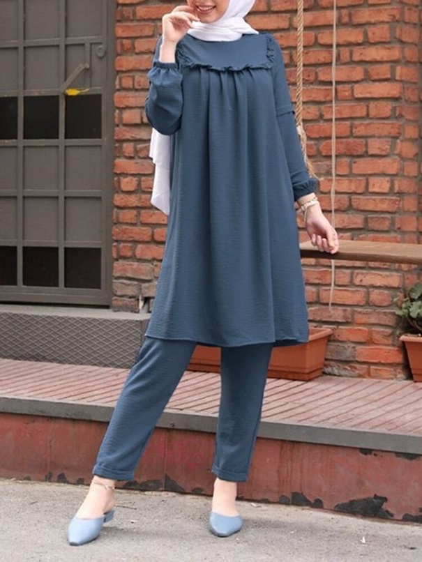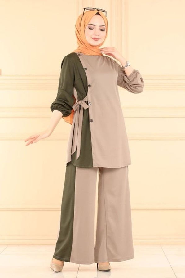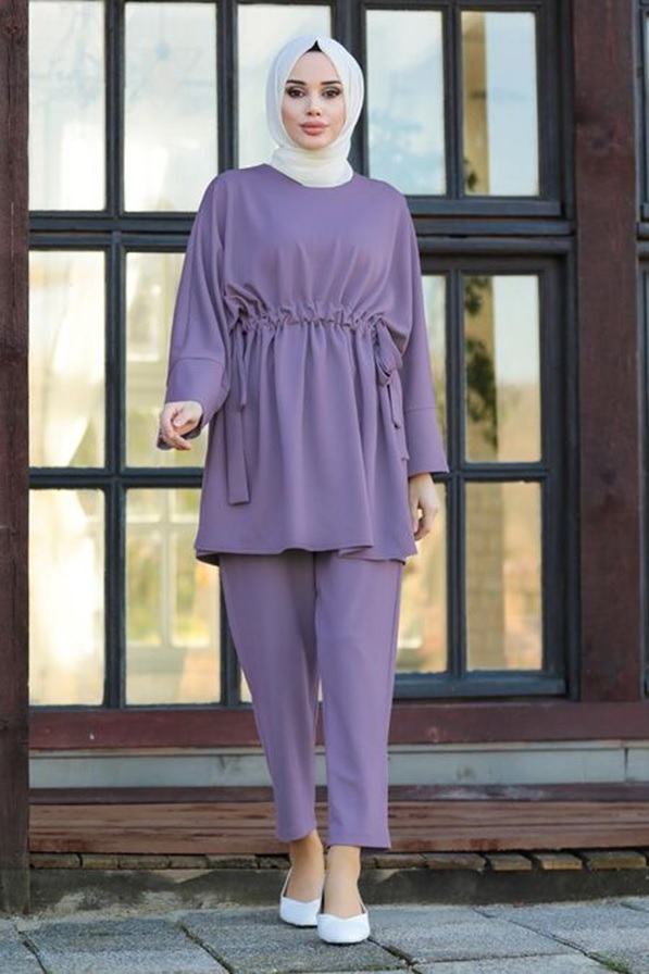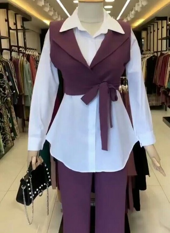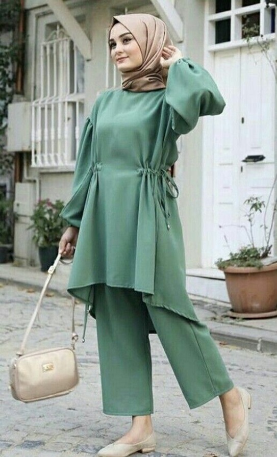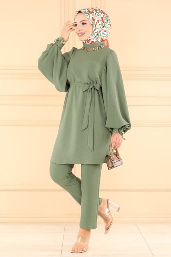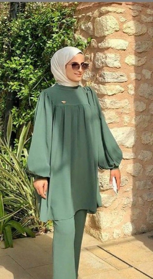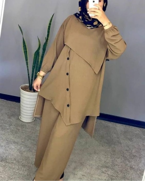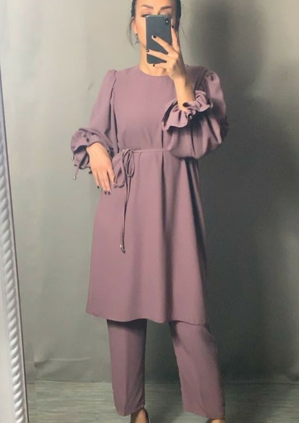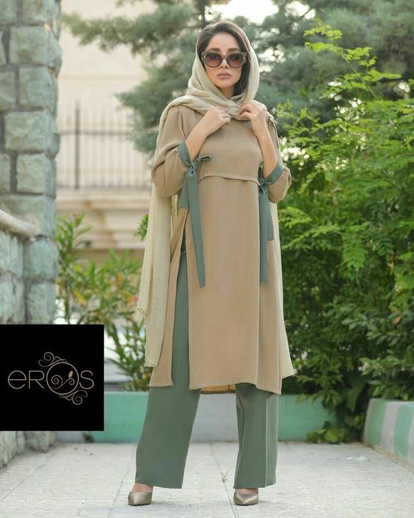 مانتو سبک پیراهن ست شده با شلوار همرنگ
