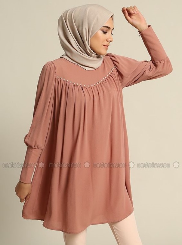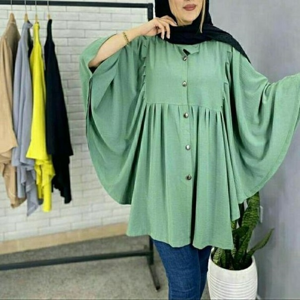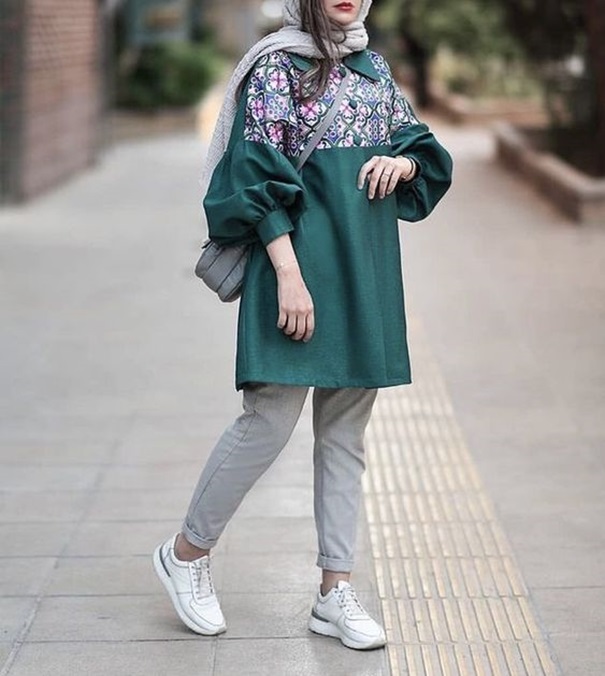 مدل مانتو پیراهنی کوتاه آستین حلزونی